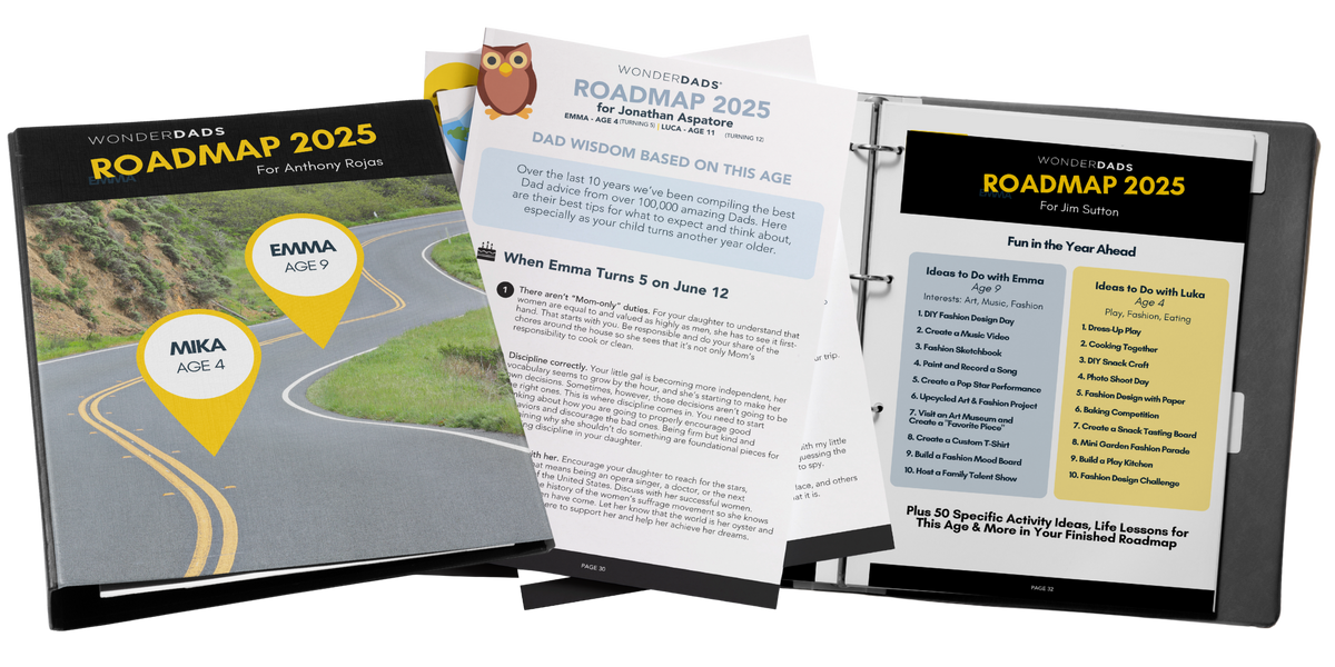 Get a WonderDads Roadmap, personalized and updated for you every year, with Dad-Kids experiences, traditions and other ways to make the most of that age of childhood...guaranteeing you stepped up as a busy Dad.